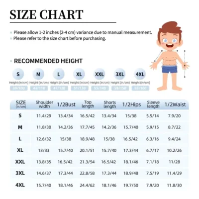 Our customizable kids’ pajama set offers the perfect blend of comfort and personalization. Made from high-quality imitation cotton (95% polyester, 5% spandex), this lightweight and breathable set includes a short-sleeved crew neck top and shorts with an elastic waistband and side pockets.​